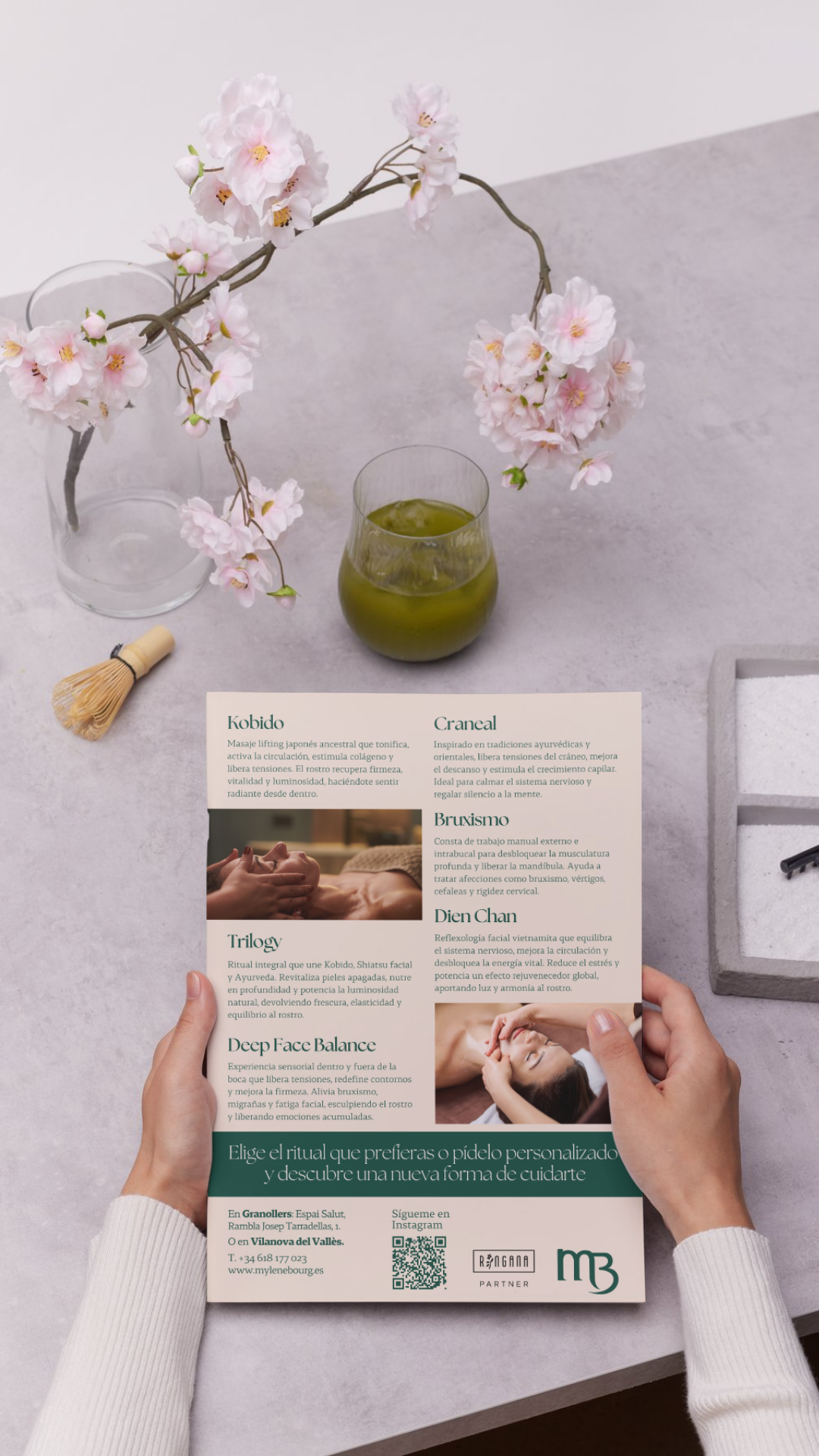 Una vegada ja teníem la web i la identitat de marca enllestida (si no ho has vist, pots esbrinar-ne el procés aquí) i un relat construït, tocava fer saber al món que la Mylène Bourg oferia els seus rituals facials en un local a Granollers.